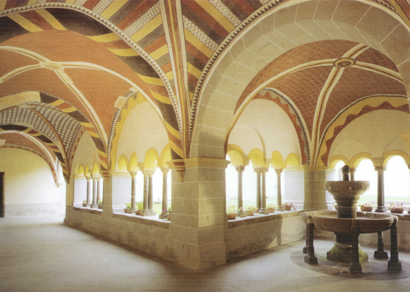 Zu einem größeren Kloster gehörte in der Regel ein Kreuzgang. Dieser lag fast immer – wie in Sayn – an der Südseite der Kirche. Im Jahre 1202 wurde die Abteikirche geweiht, um 1230 entstanden die vier Flügel des Kreuzgangs, zu dessen Westflügel ein Brunnenhaus mit einem zweischaligen Brunnen gehört. (Abb. 1)